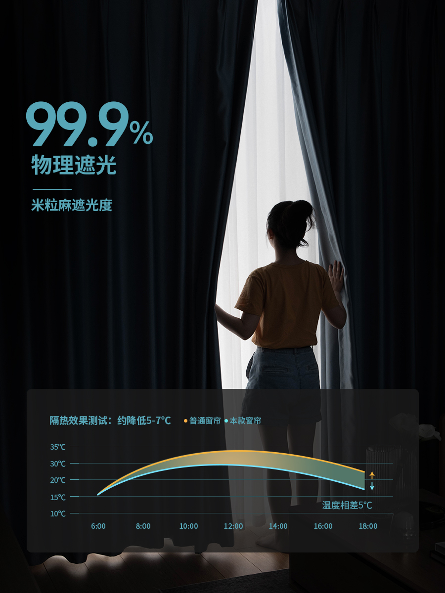 Full blackout Japanese hook French cotton and linen bedroom blackout curtain shop