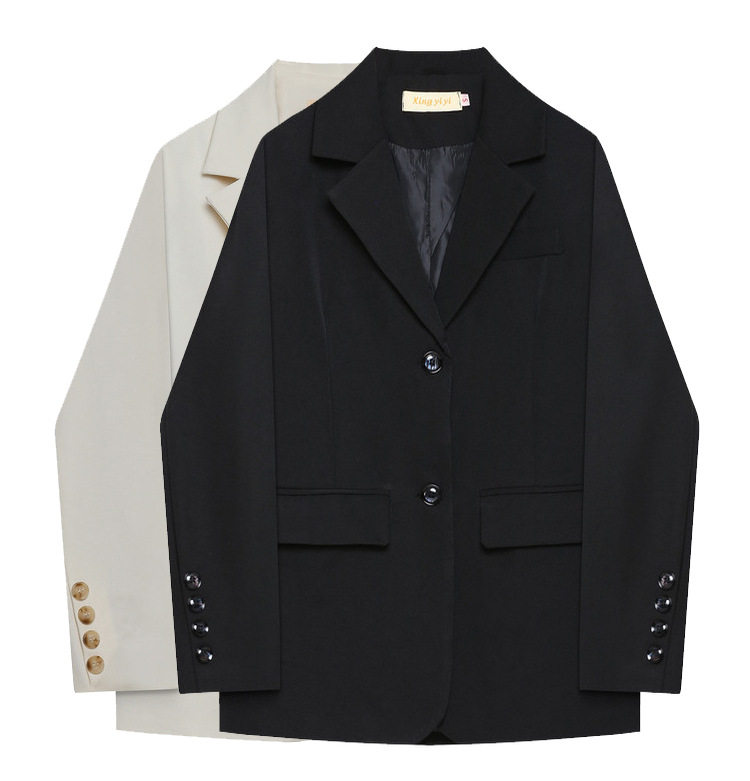 Black Homemade Minor West Suit Woman Han Edition Small Crowd Design Feel Loose White Inn Wind size Size Professional Suit Jacket