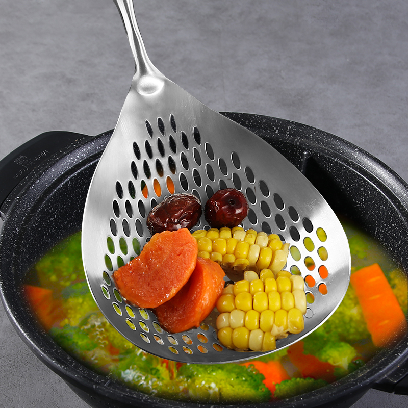 Home kitchen Kitchen Hedge large mix Flour Spoon filter Hot Pot Spoon 304 Stainless Steel Leaking Spoon Fried Scoop