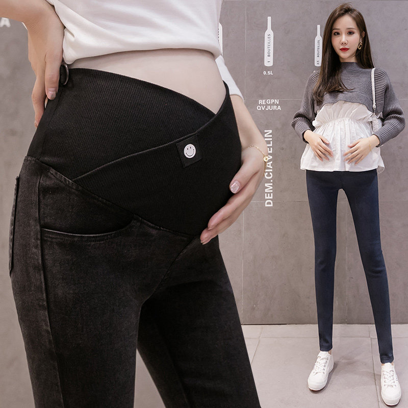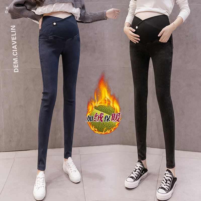 Trendy mom pregnant women low waist jeans spring and autumn outer wear fashion bottoming maternity pants autumn and winter plus velvet thick trousers