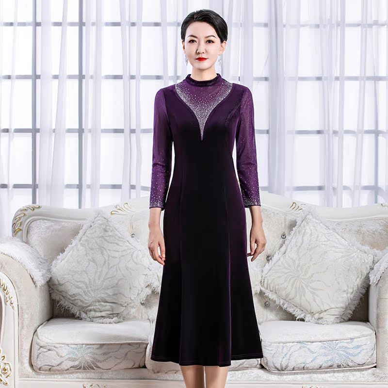 High-end wedding mom gown 2022 Summer middle-aged woman young happy mother-in-law wedding dress with velvet dress in a long version