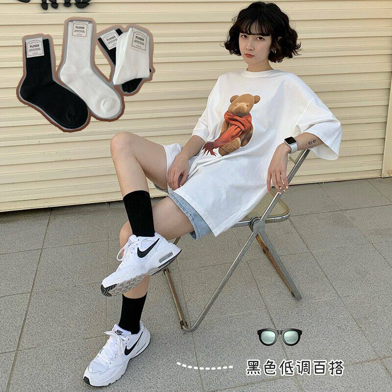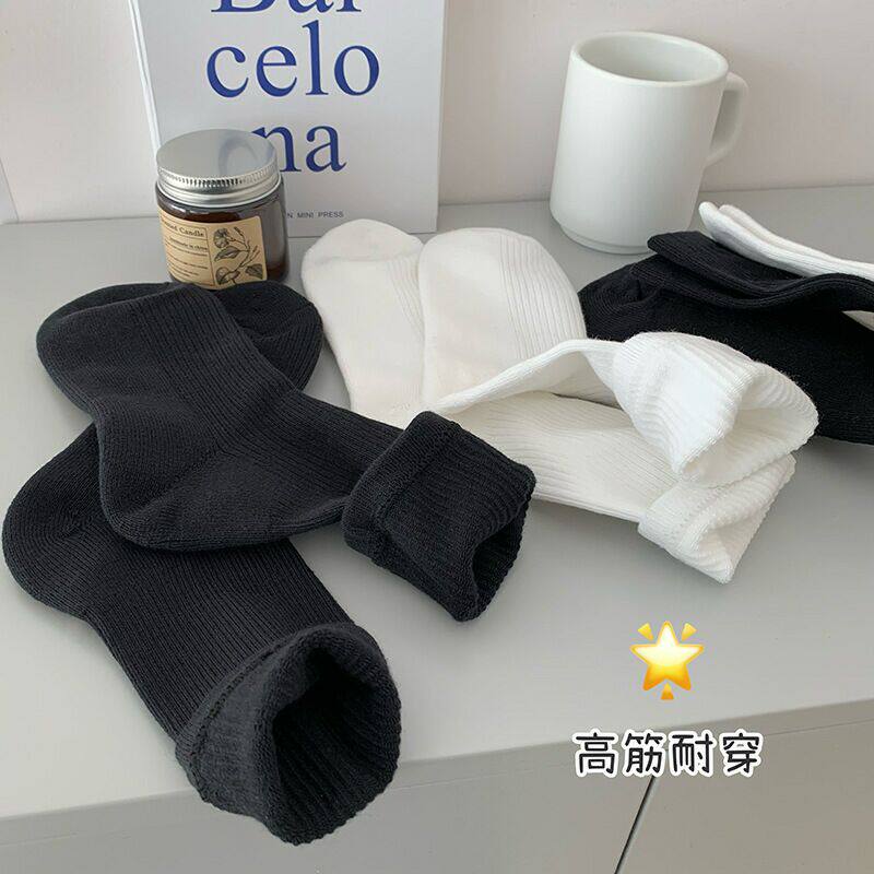 Black socks women's middle tube socks Japanese and Korean style plus velvet autumn and winter pit strip bubble socks women's autumn jk stockings