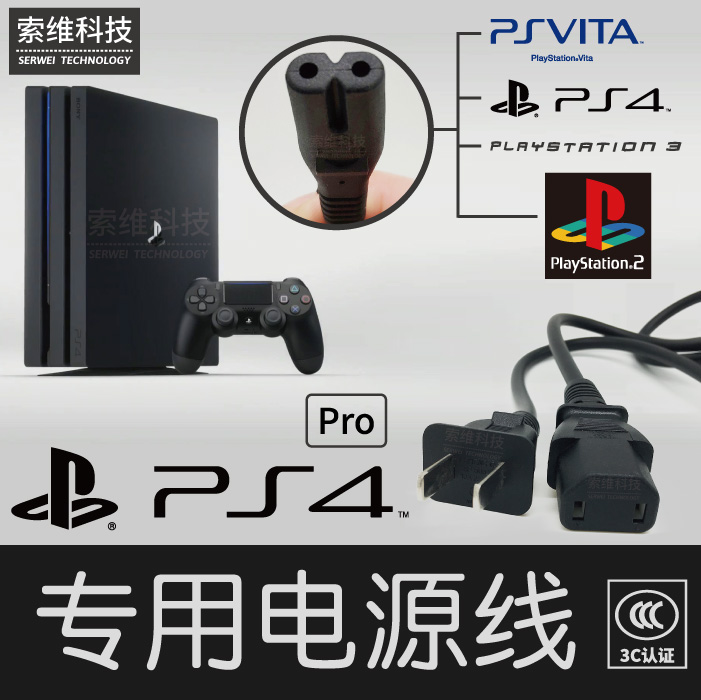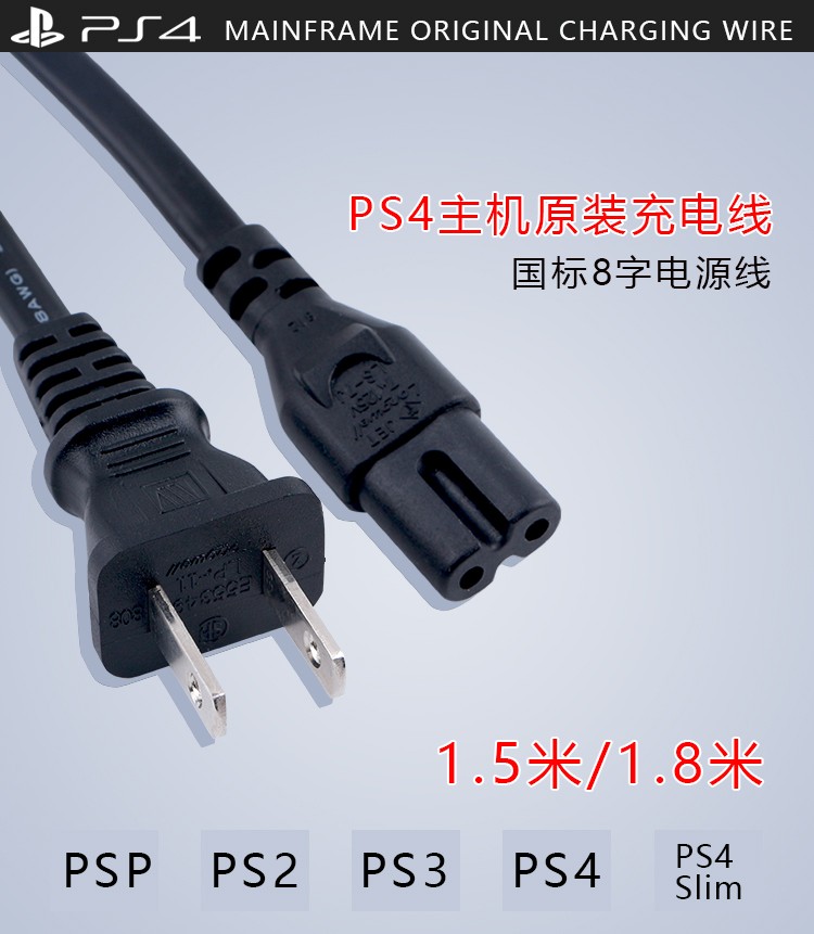 Sony PS4 power cord originally installed Pro national standard port version of universal PS5 charging line lengthened XBOXONE PS3 plug