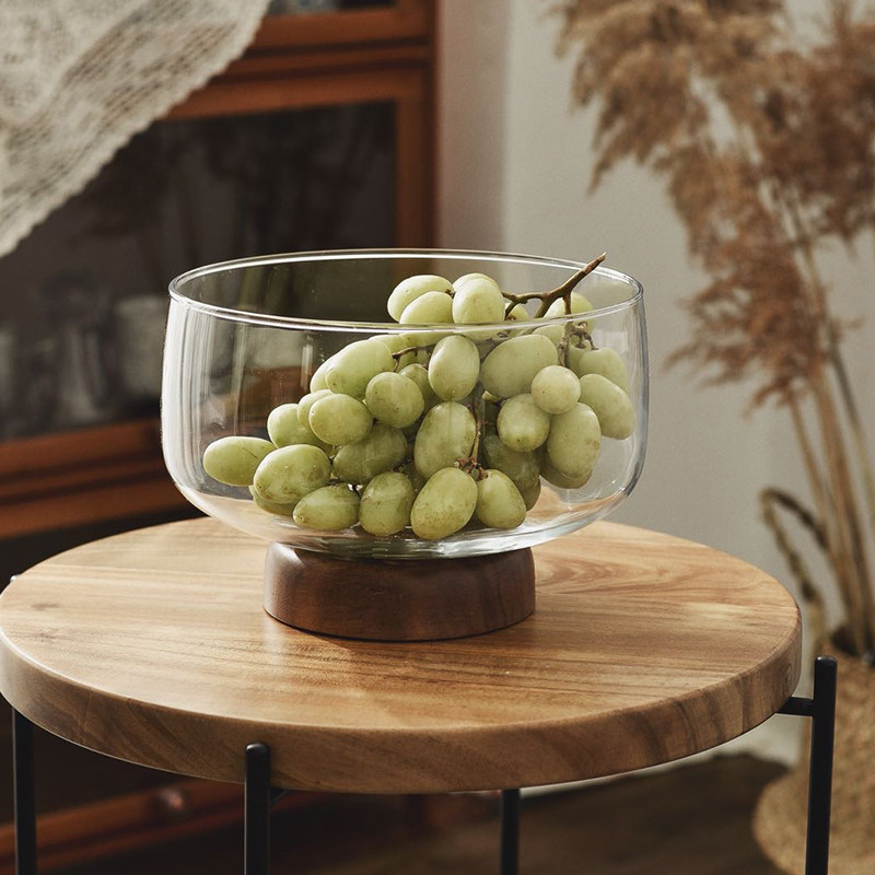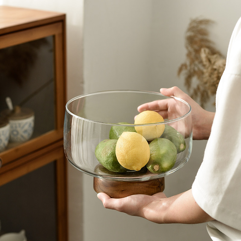 Creative Fruit Basket Living Room Home Modern Minimalist Tea Table Candy Basin Containing Box Personality High Footed Glass Fruit Pan Wood