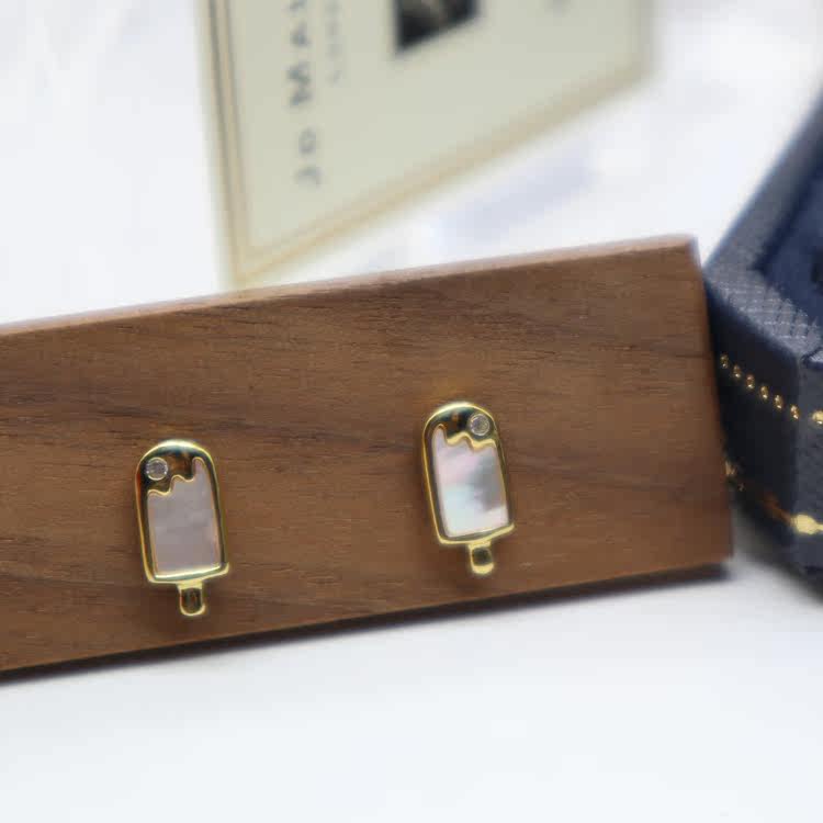 925 silver Japanese and Korean fashion personality ice cream ear needles temperament small and simple earrings ice cream earrings popsicle silver jewelry