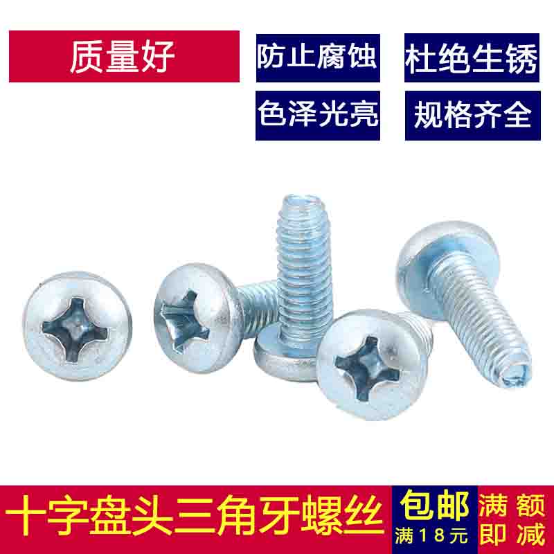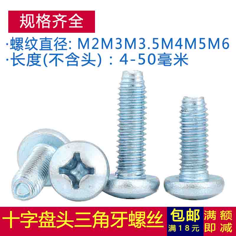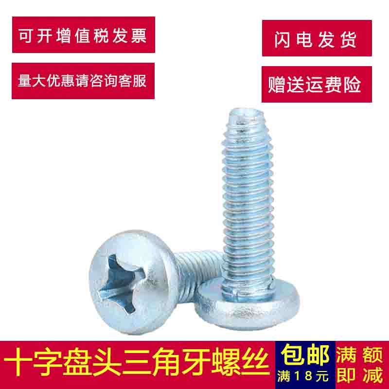 M2-M6 disc head triangular tooth screw cross self-tapping locking screw semicircular head self-tapping cabinet bolt blue white zinc