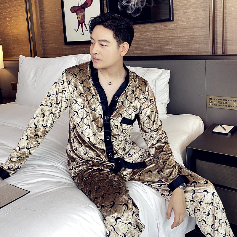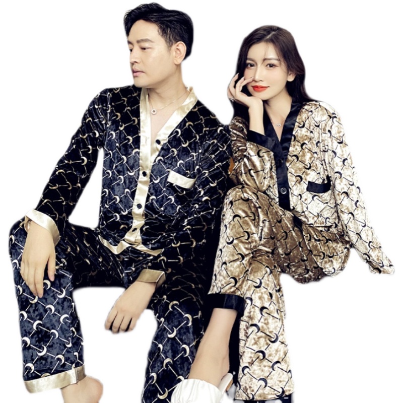 MAJE MANTAS gold velvet couple pajamas women's autumn and winter new long-sleeved net red warm home clothes two-piece set