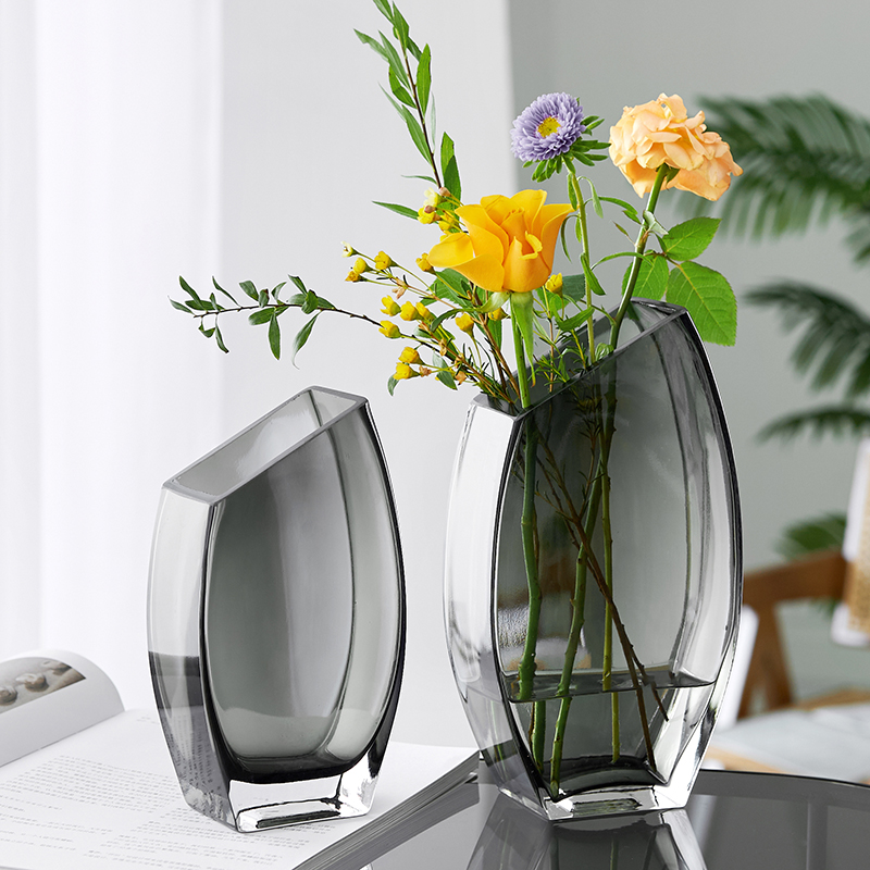 Light luxury Nordic simple creative oblique glass vase hydroponic flowers living room table vase decoration decorations