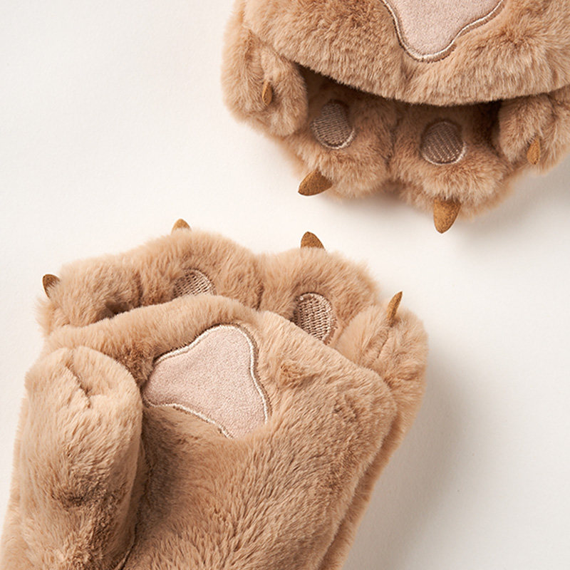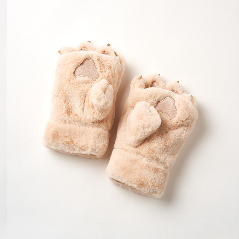 Plush Half Finger Gloves Women Winter Cute Ins Plus Suede Winter Bear Palm Dew Finger Gloves Female Winter Warm Girl Paws