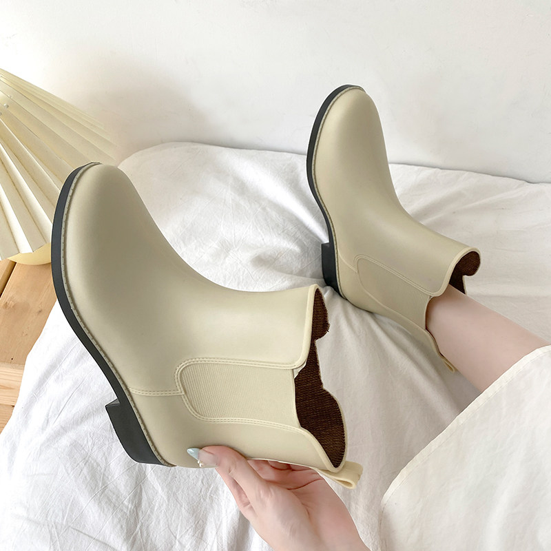 New fashion rain boots female adult waterproof shoes short tube non-slip plus velvet warm rain boots grocery shopping kitchen work shoes
