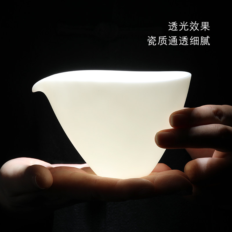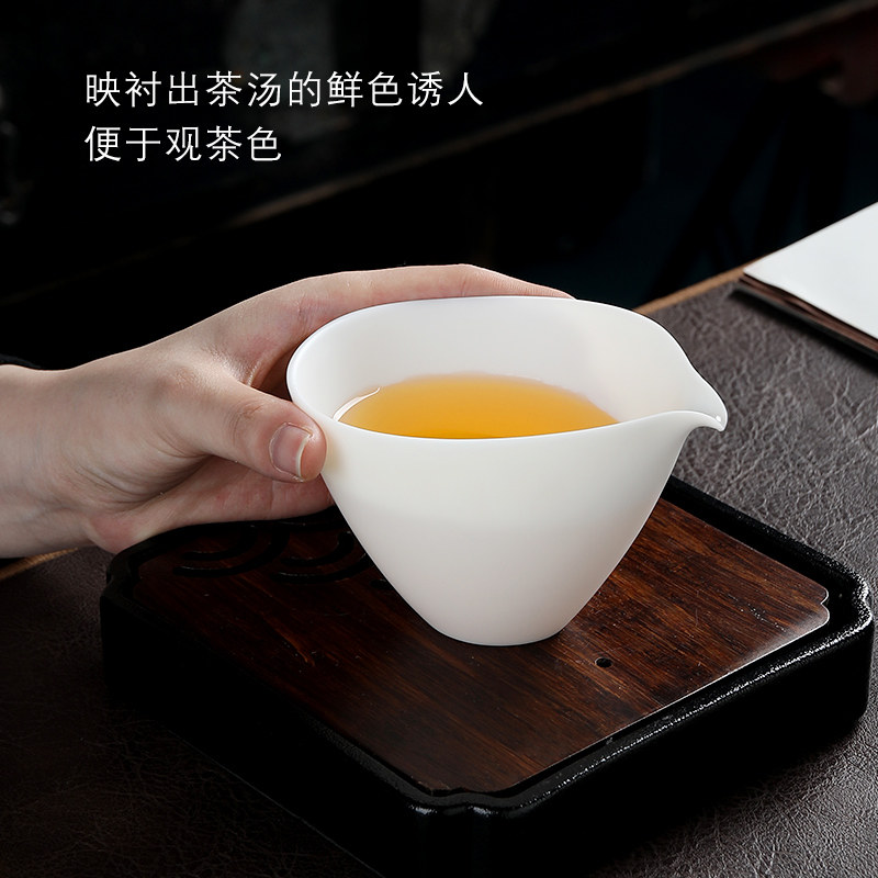 Miaolian Tianxiang Dehua mutton fat jade porcelain pure white handmade justice cup kung fu tea set simple accessories tea sea tea set