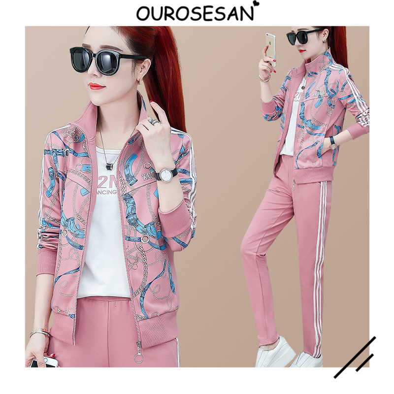 OUROSESAN SPORTS SUIT WOMEN SPRING AUTUMN 2022 NEW FASHION PRINTED BIG SIZE Body Clothing Three Sets
