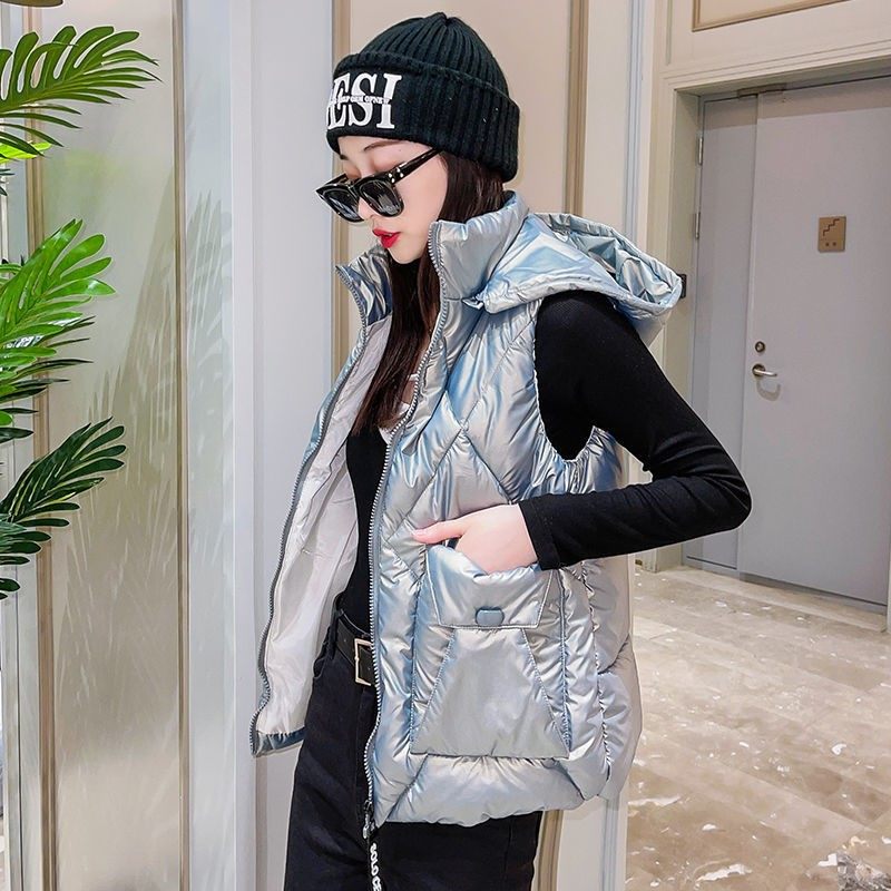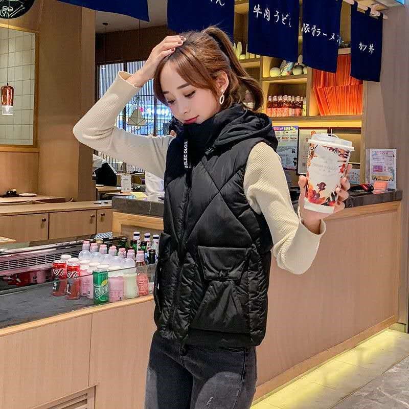 New Short Cotton Vest Women's Autumn and Winter Live Cap Removable Down Cotton Vest Student Vest Versatile Warm Vest