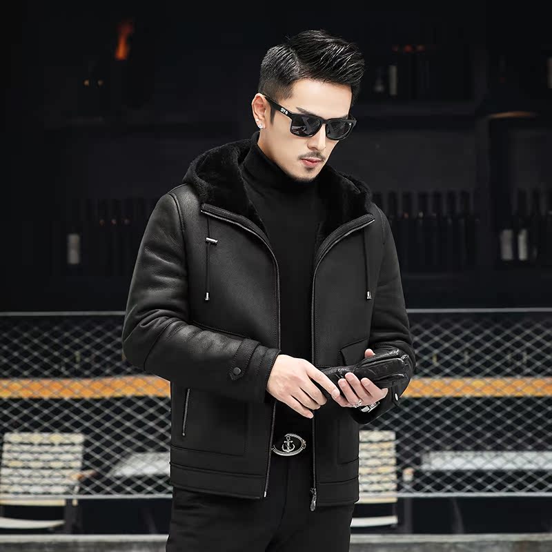 2021 new winter Haining Leather leather men original ecological fur one hooded casual sheep fur coat