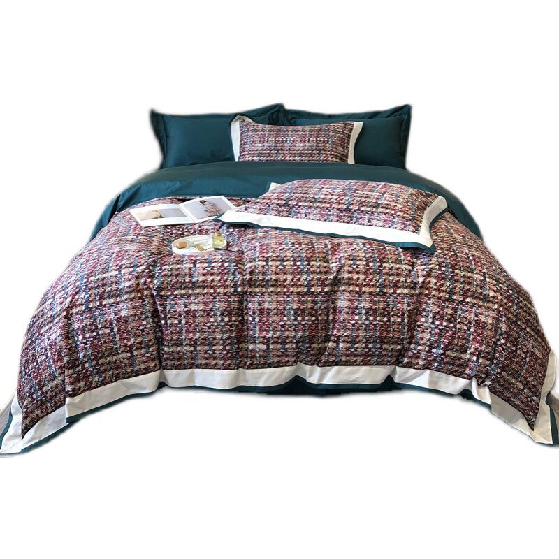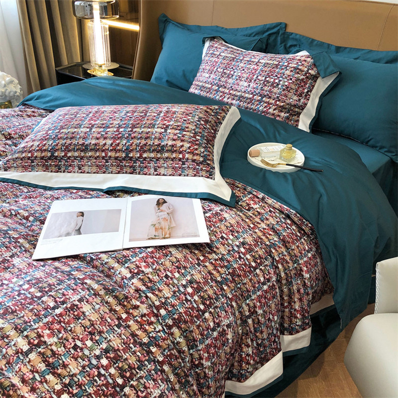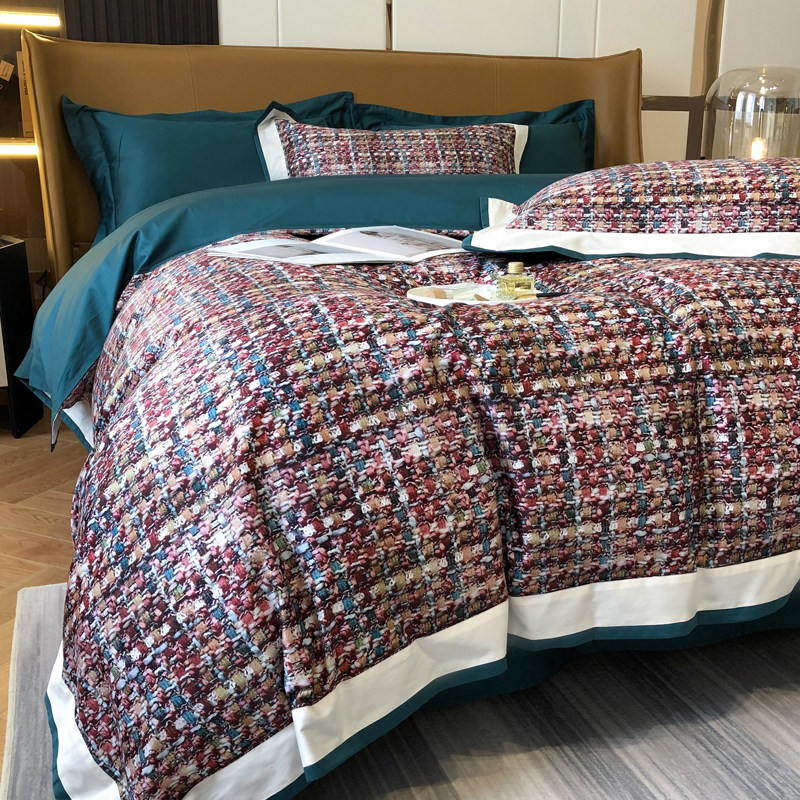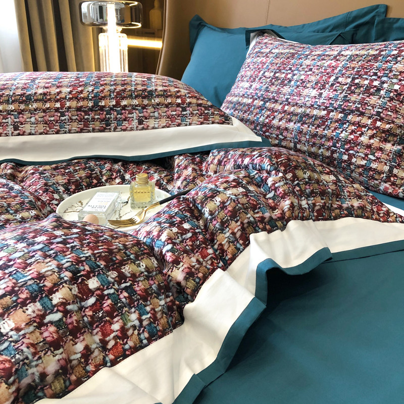 XERST small fragrant wind light and luxurious 120 long suede cotton four pieces of kit minimalist pure cotton full cotton bed sheet bedding