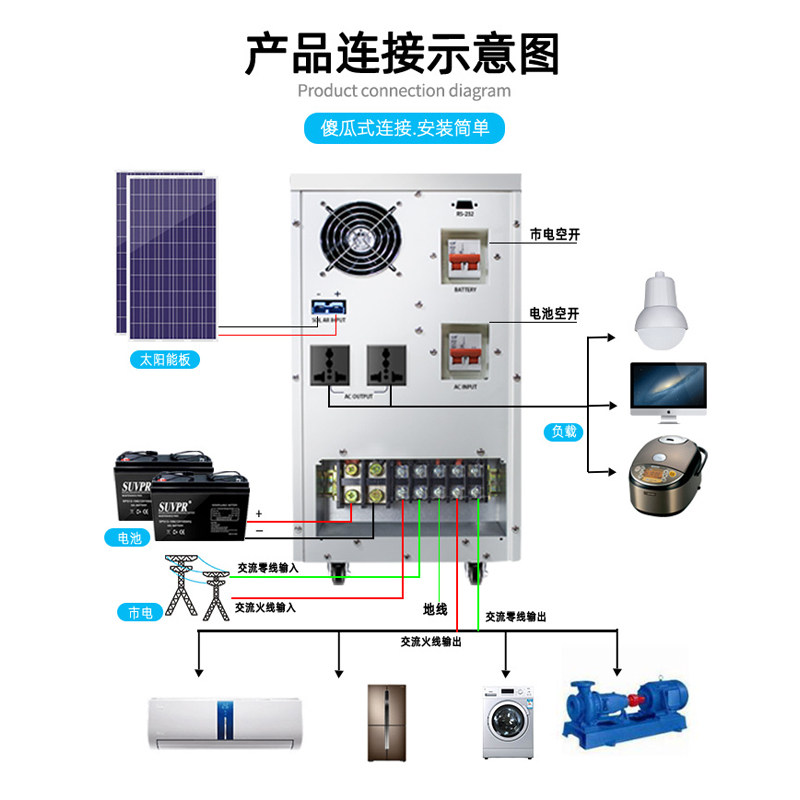 Solar power system Home 220v backcontrol integrated 6000W off-grid outdoor light volt board generator equipment