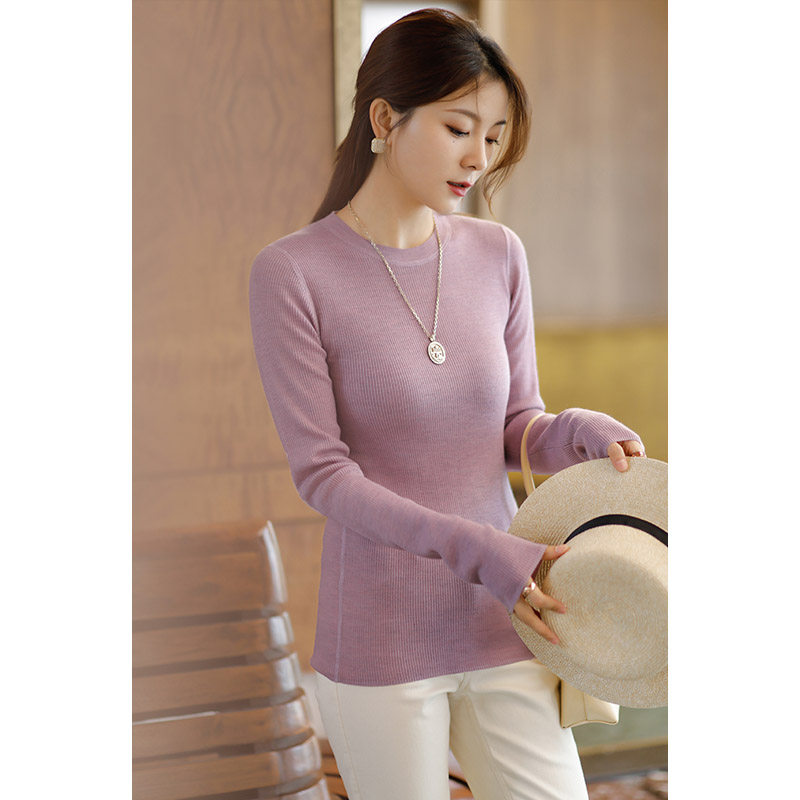(Spot) Combining comfort and quality~ Slim-fit worsted wool knitted sweater women's round neck long-sleeved bottoming top