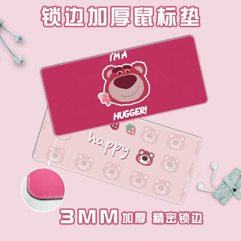 Pink Cute Strawberry Bear Slip Rat Cushion Super Cute Desk Cushion Minimalist Gaming Plastic Mat Small Freshener Woman Laptop Computer Mat Office Keyboard Mat Waterproof Ins wind pattern customizable