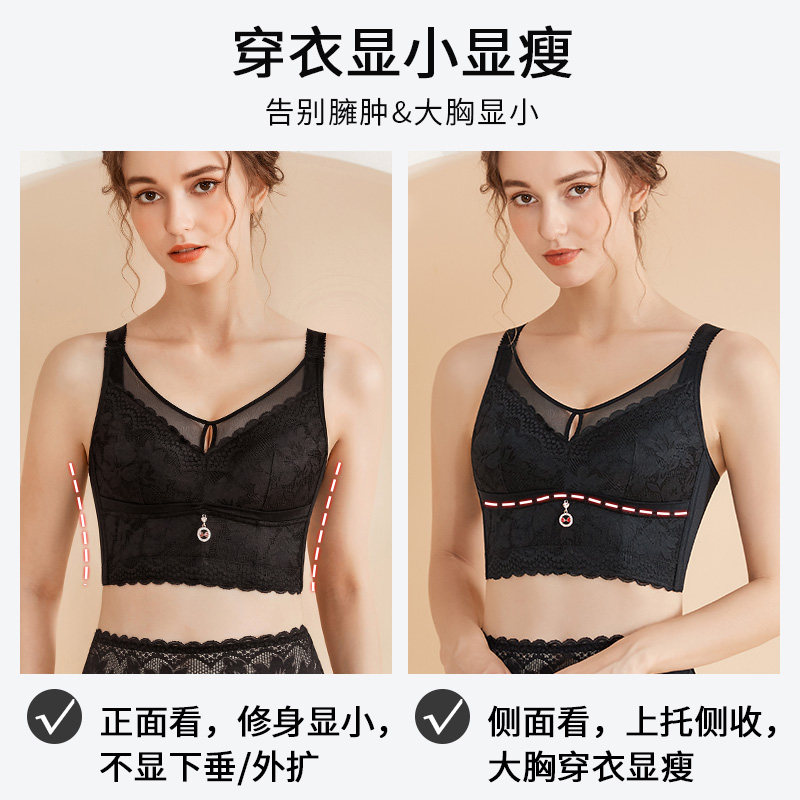 Large Size Underwear Woman Suit Thin large chest display small anti-drooping collection Breast Mm Obliterted Breast-breasted Beauty Back bra Bra Hood