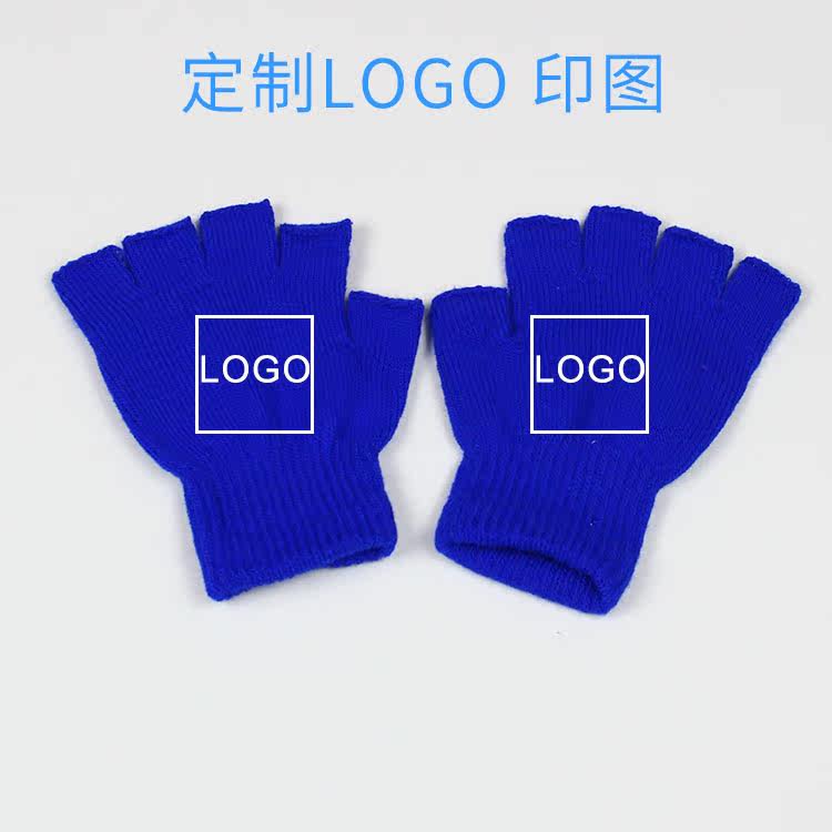 Half-finger gloves knitted wool winter warm hand guards custom LOGO prints for men and women students children riding