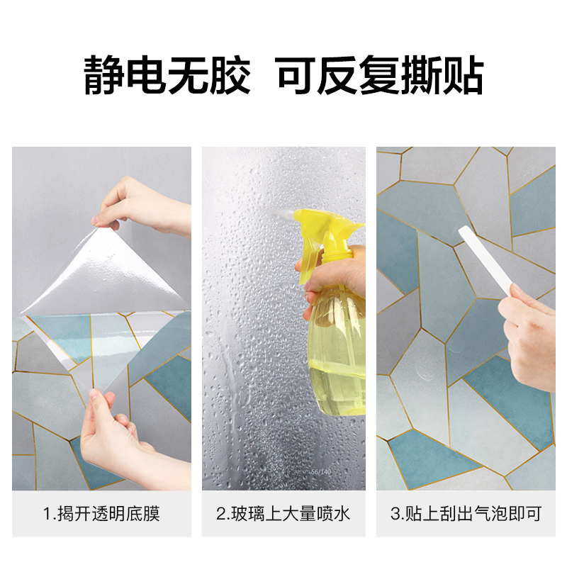 Makeup Room Window Sticker Anti-Walk Light Frosted Electrostatic Bathroom Light Transmission Opaque Geometric Glass Cling Film Paper