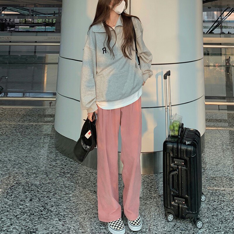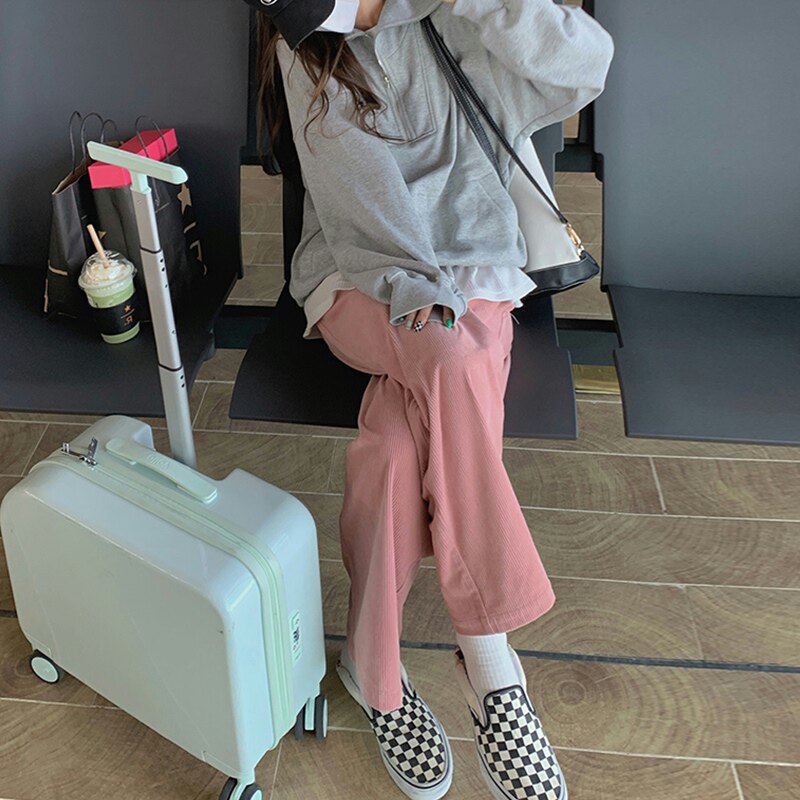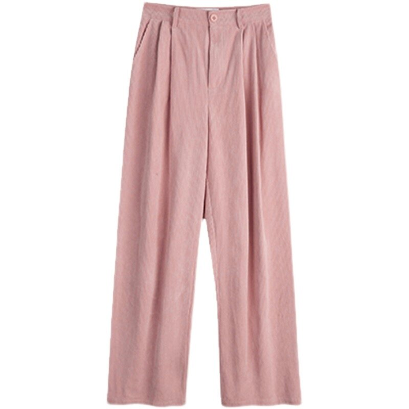 Pink cordux pants Spring and autumn fat sister large-yard women's high waist slim and loose straight tube casual broad leg pants