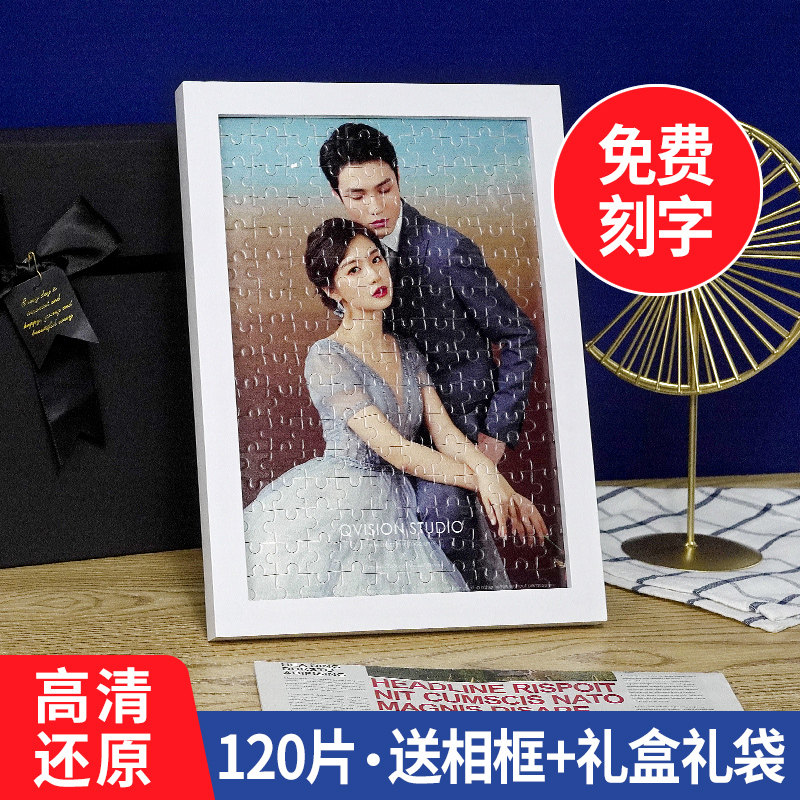 (puzzle) White Photo Frame Puzzle Gift Bag 120 Pieces (pieces) Log-colored Photo Frame Puzzle Puzzle Gift Bag 120 Pieces (spelling out scripts)Original Wood Photo Frame Puzzle Gift Bag 120