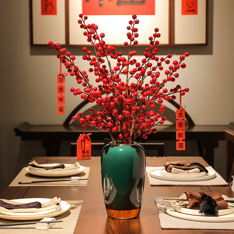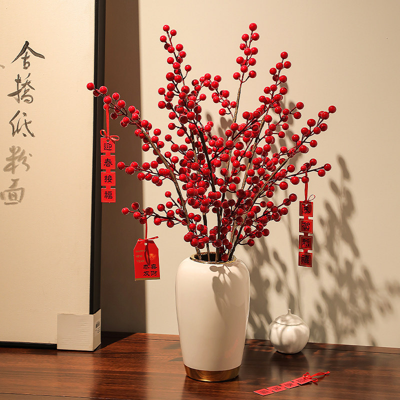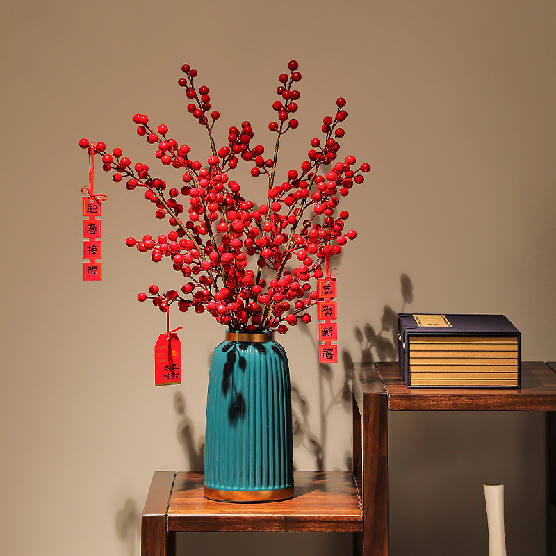 Fortune-making Fruit emulation Flower Living room Furnishing Berries Red Fruits Red Fruits Winter Green Dried Flowers Bouquet Fake Flowers New Chinese New Fancy 2021