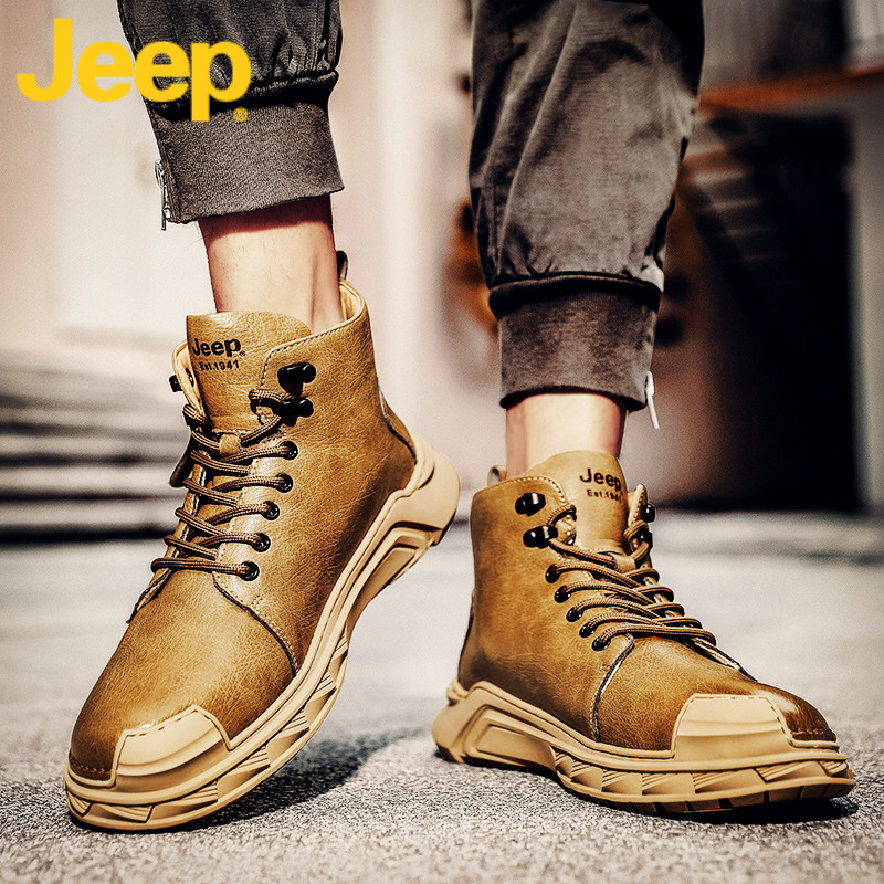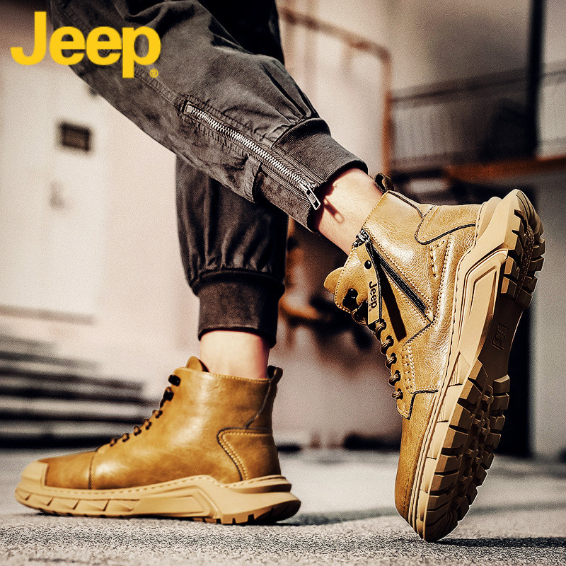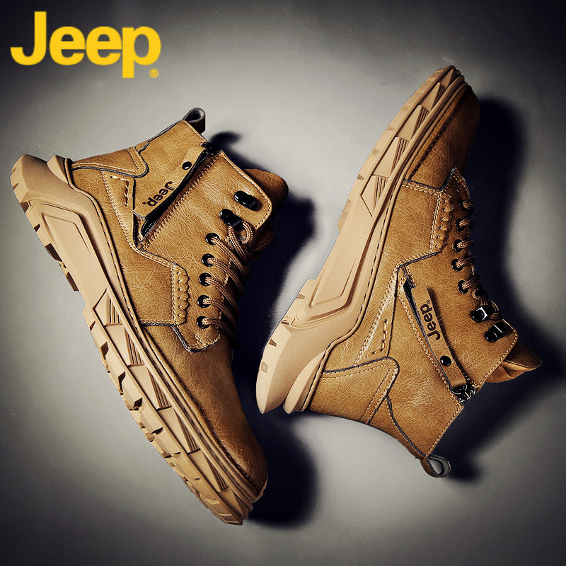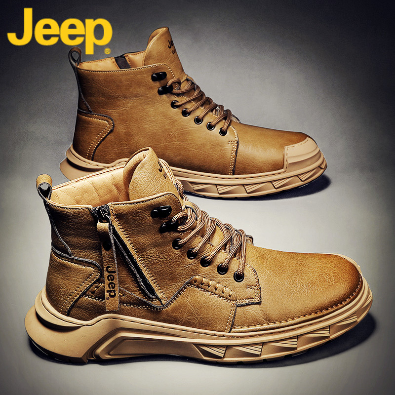 jeep gip jeep Martin boots man style high cylinder men's shoes spring autumn season genuine leather men plus suede warm cotton shoes tooling boots