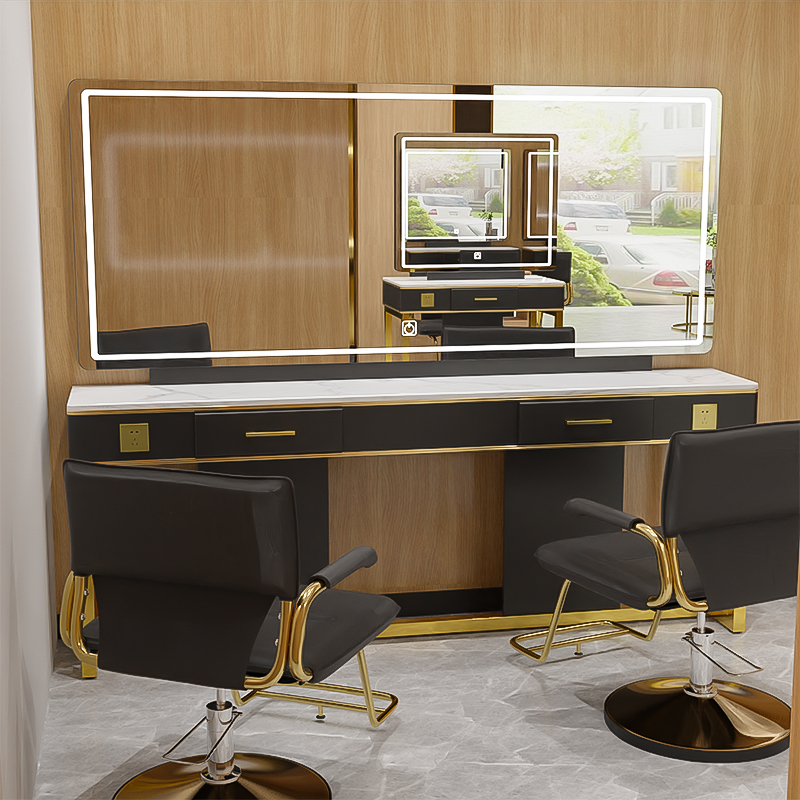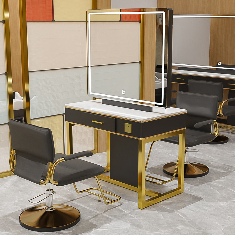 Hair salon special stainless steel perm table mirror table table cabinet integrated net red barber shop mirror table hair salon with light mirror mirror