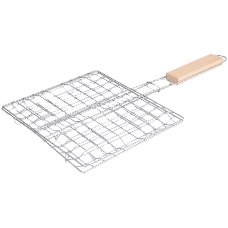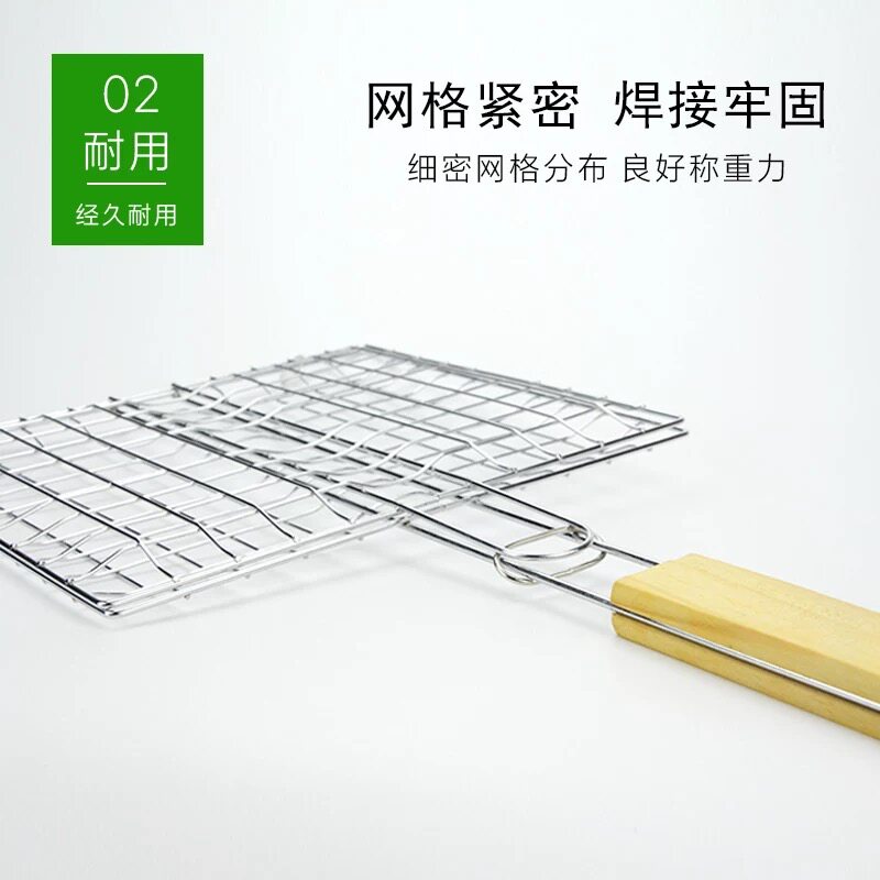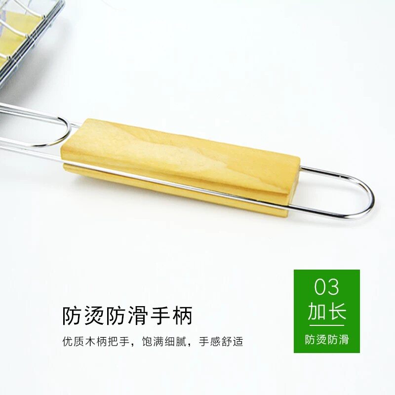 Wood Handle Grilled Fish Clip Outdoor Barbecue Tools Accessories Thicken Multipurpose Barbecue Net Stainless BBQ Grilled fish net