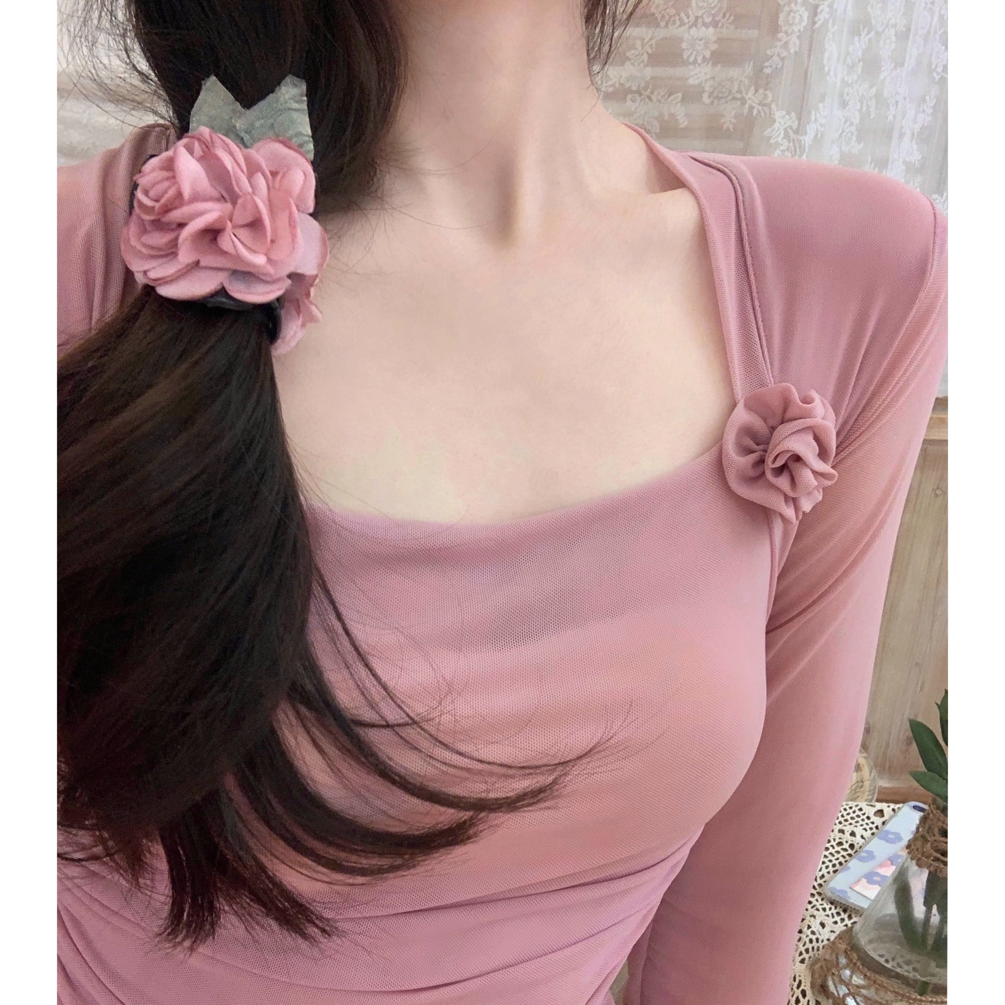 Classical Dance Exercises women's fall new long sleeves Slim Rose Web Yarn 100 hitch on a dress for training costumes