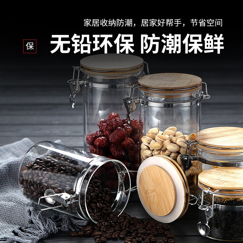 Bamboo official miscellaneous grain storage box glass bottle with lid storage food sealed can coffee bean storage can tea can bottle