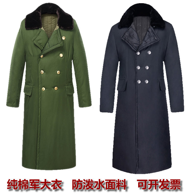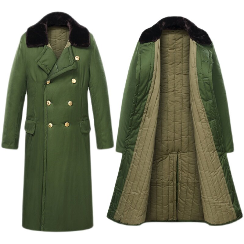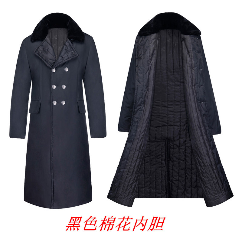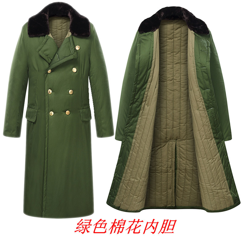 Army green cotton coat long version windproof thickened winter pure cotton cold storage lapel cold security guard duty clothing