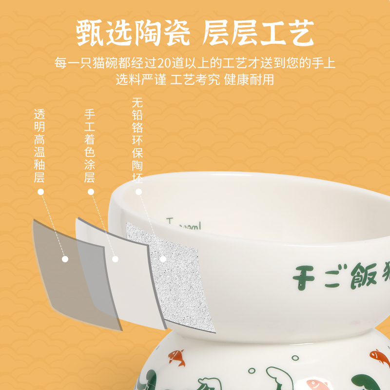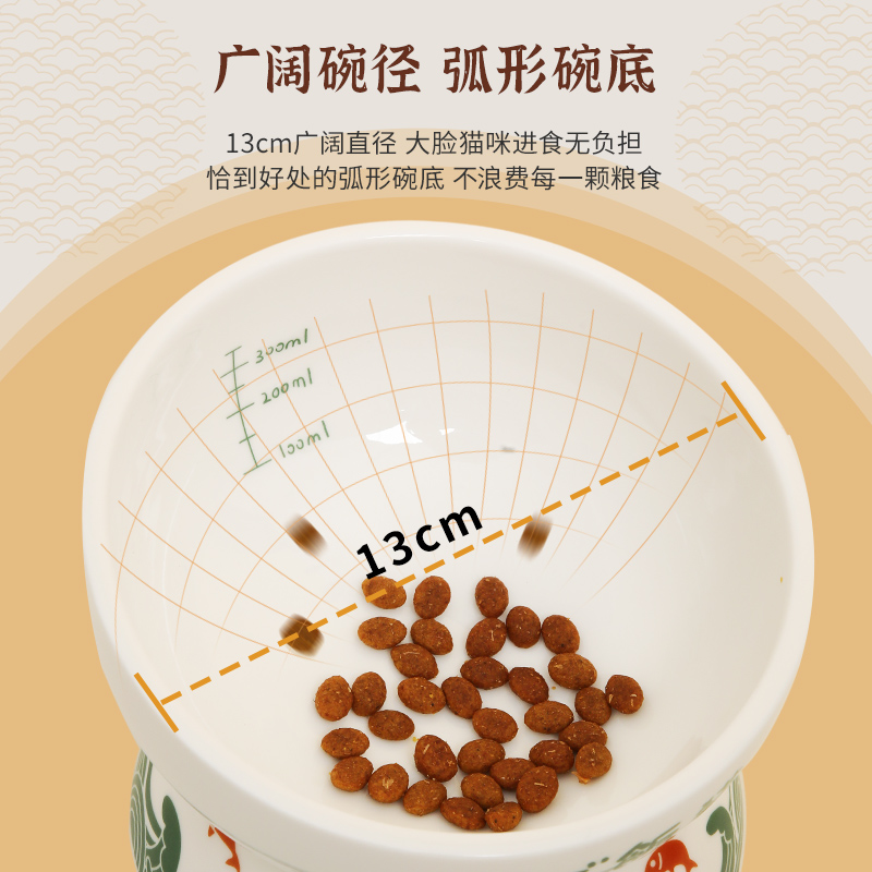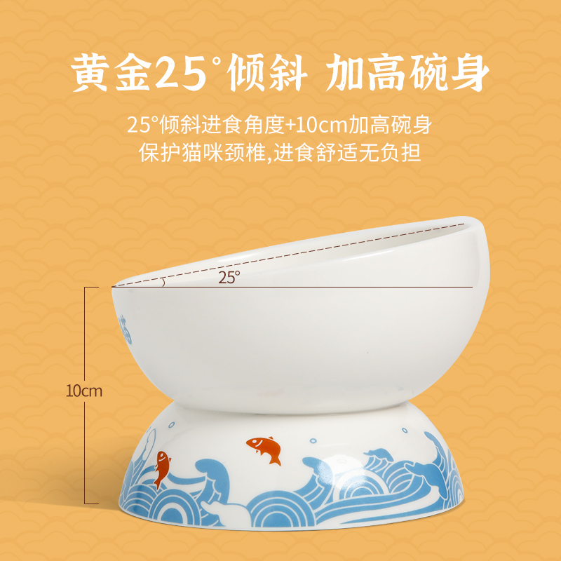 Cat bowl cat food bowl ceramic high foot anti-overturning double bowl protection cervical vertebra rice bowl dog bowl cat drinking water food bowl supplies