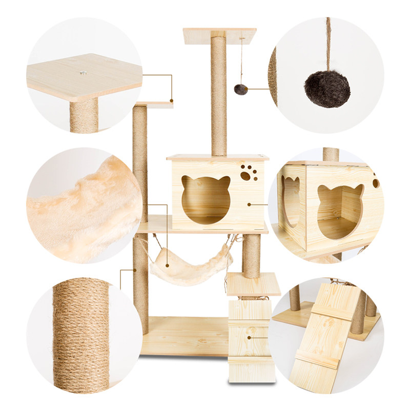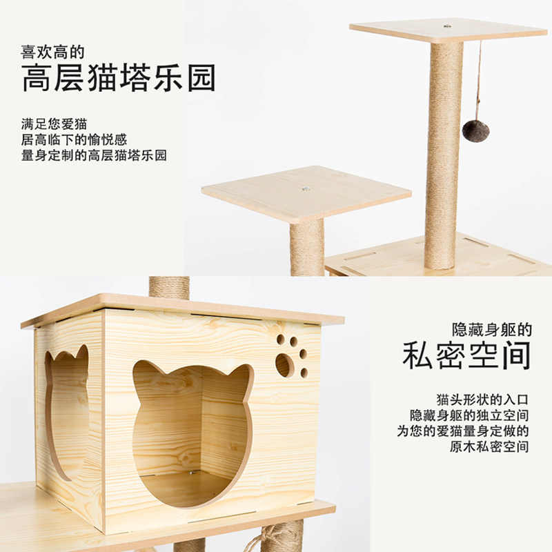 Dingdong cat climbing frame cat litter all solid wood cat crawling litter free punching cat frame does not occupy the land hemp rattan cat jumping platform