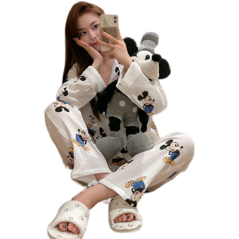 Pajamas women's autumn and winter cotton Mickey 2021 new net red popular light luxury two-piece suit cotton home clothes - Taobao