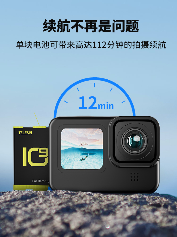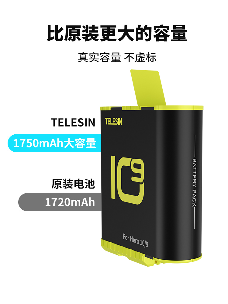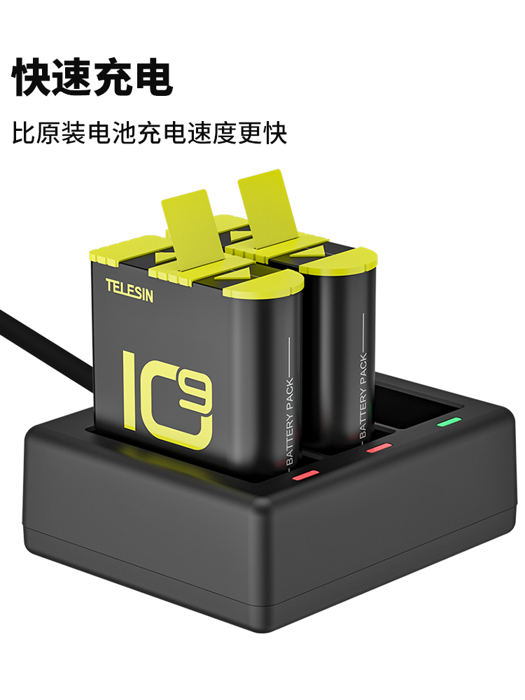 TELESIN Adapts gopro10 Battery Storage Charger Action Camera Full Decoding Low Temperature Resistant Long Endurance Dog 9 Battery Suitable for Gopro10 9 Accessories Battery Charger