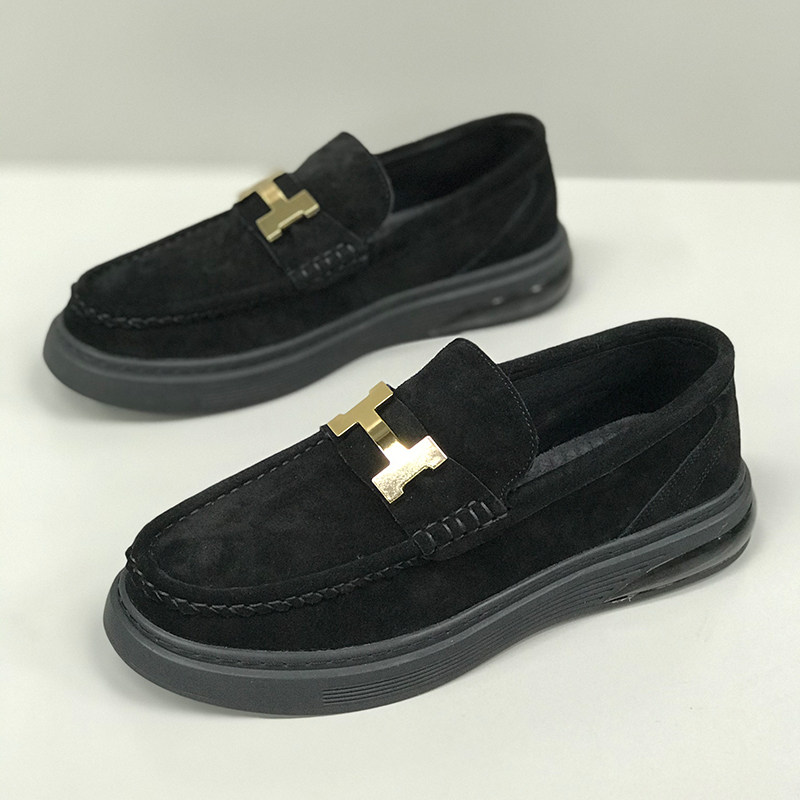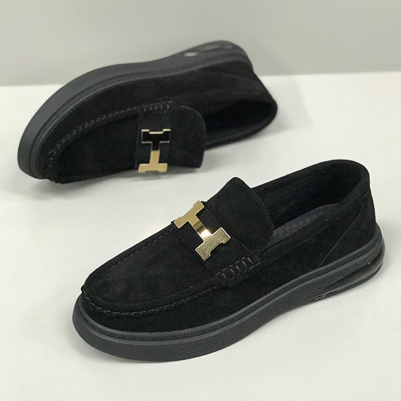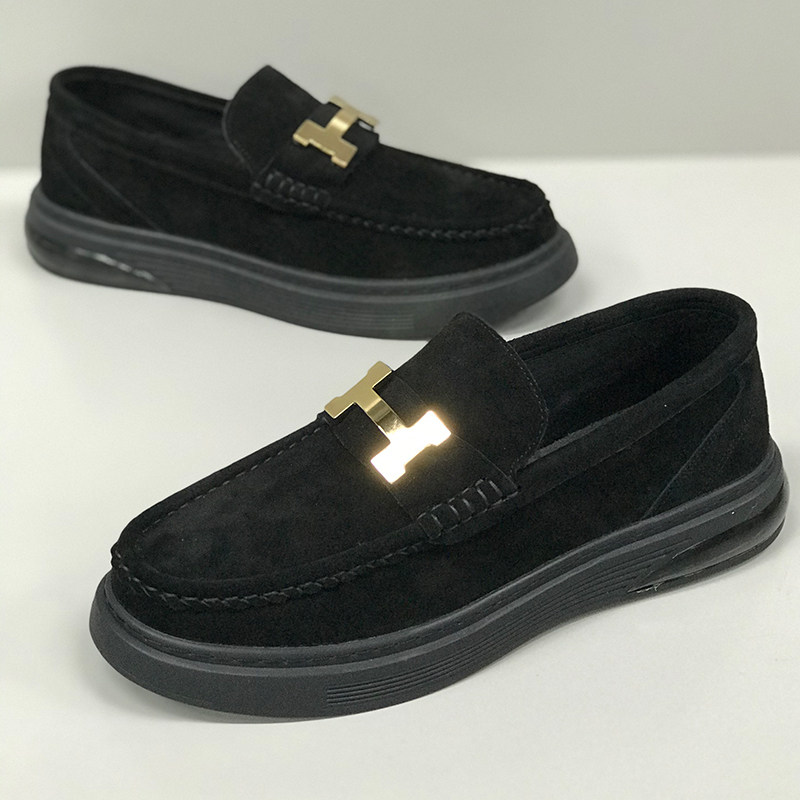 European station suede leather shoes Doudou shoes breathable feet spring and autumn casual top layer cowhide men's thick sole 2022