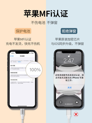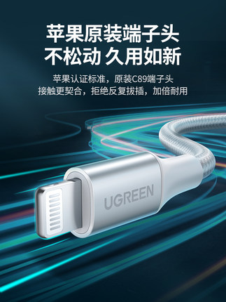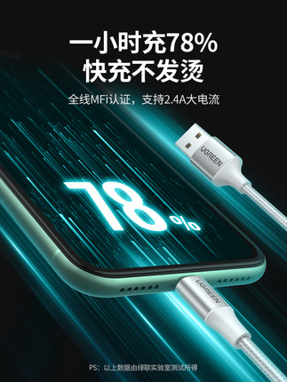 Green Union iphone7 data line mfi authentication is suitable for Apple 13pro12max11 mobile phone ipad tablet