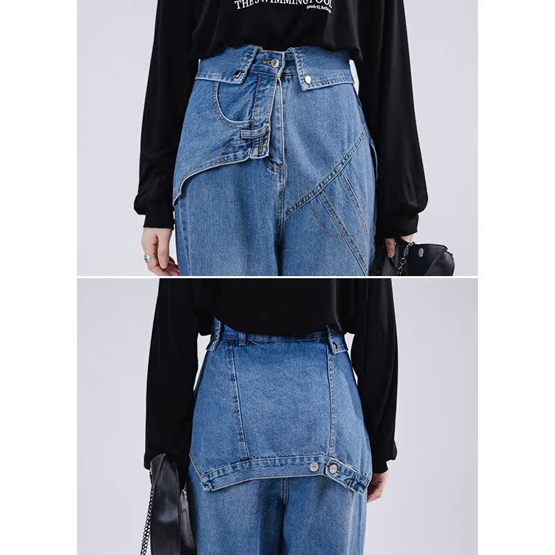 Fake two-piece high waist jeans Women's small crowddesign Sense Personality Splicing Loose Casual Straight Barrel Haren Pants Tide 2022