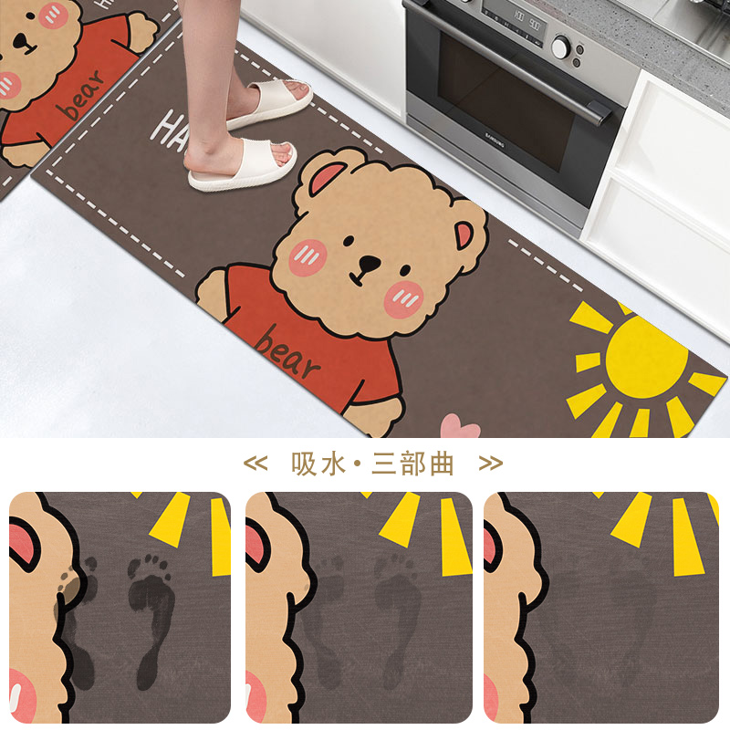 Cartoon kitchen floor mats can be wiped without cleaning and dirt-resistant foot pads oil-absorbing and water-absorbing long strips non-slip, oil-proof and waterproof carpet