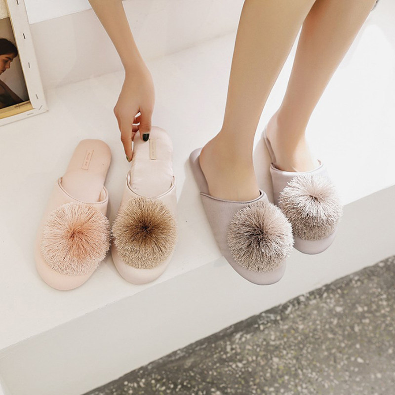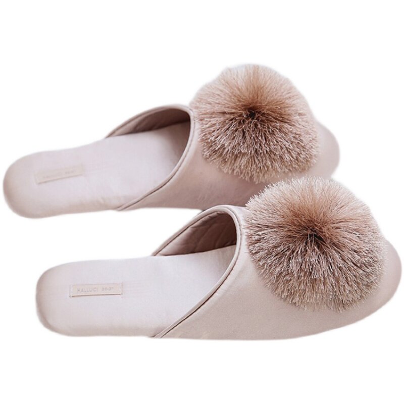 Nordic Wind Retro-Gusto ball non-slip Breathable Home Shoes Ins wind satin chic slippers female