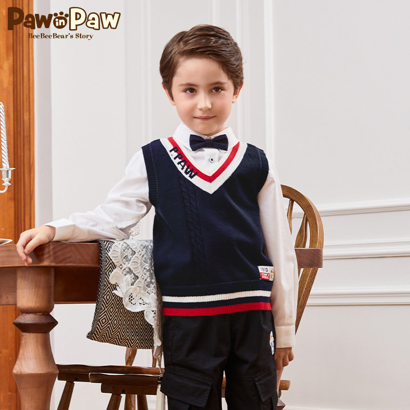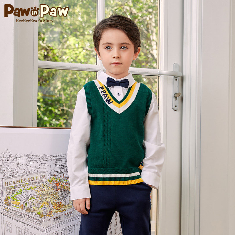 Pawn Paw Cartoon Little Bear Boy Clothing 2022 Fall New Boy Yinglun Wind V Collar Crash Color Knit Horse Chia