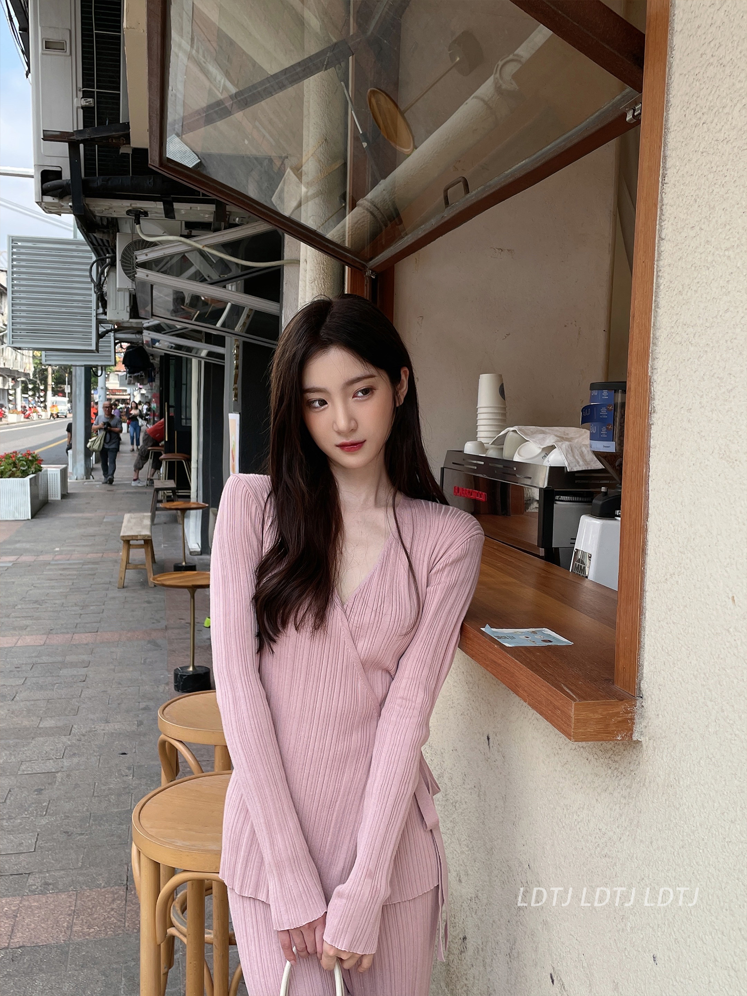 LDTJ Gao Ding 22 Xia Xin gentle lazy pajamas wind lady elegant lady knitted temperament coat trousers suit
