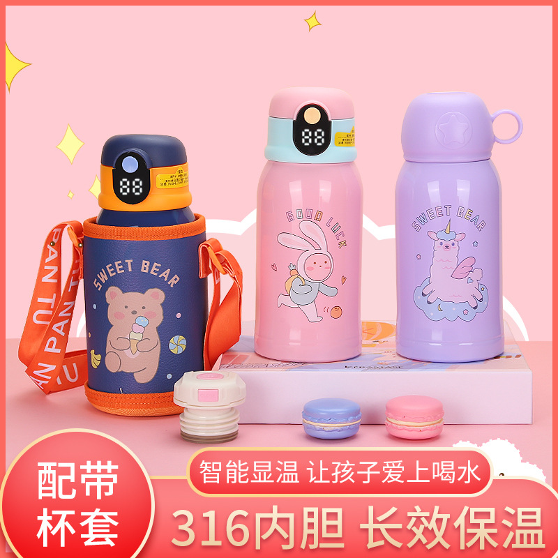 Smart temperature display 316 stainless steel children's thermos mug male and female elementary school students portable water bottle baby water cup with straw