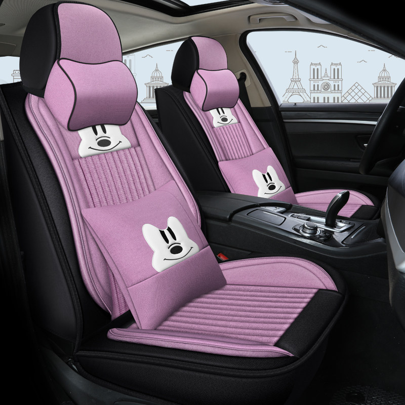 Car seat cushion four seasons universal cartoon fully surrounded linen cloth seat cover goddess new winter special seat cover