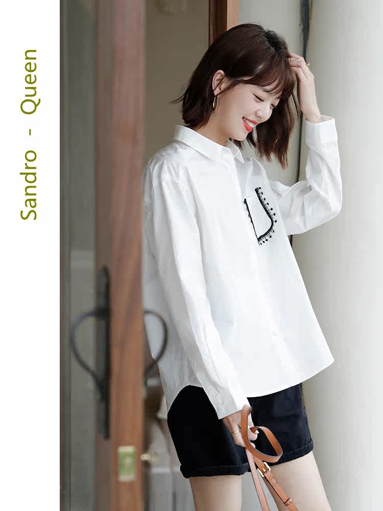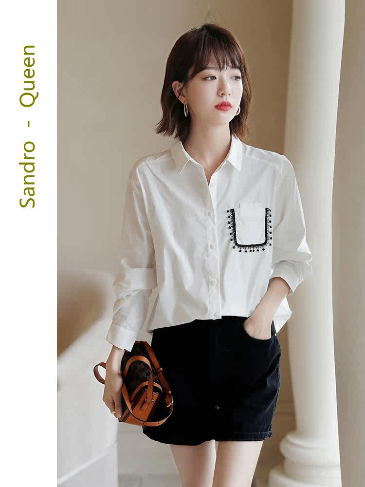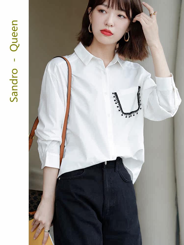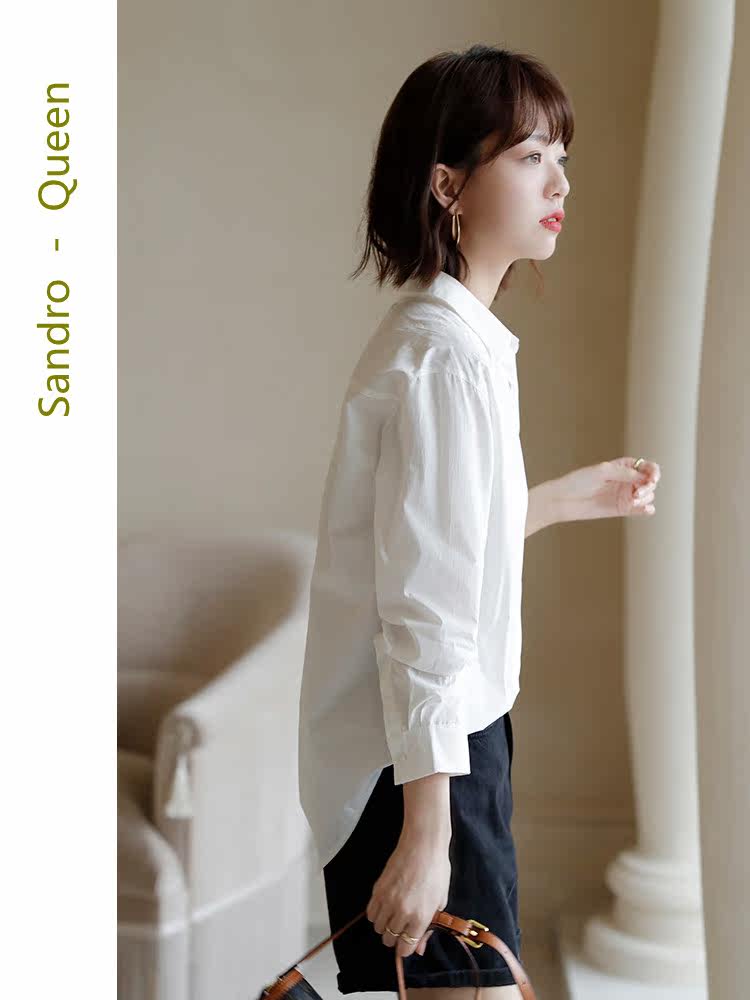 Sandro Queen2021 autumn new fashion professional white shirt women's top long-sleeved temperament all-match shirt