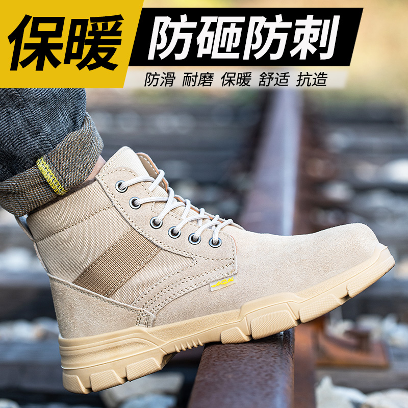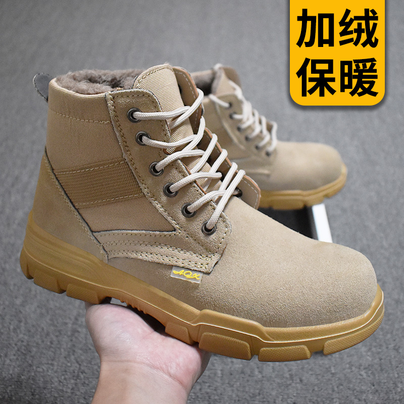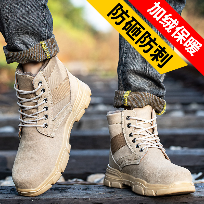 Labor insurance shoes men's cotton shoes winter plus velvet warm steel head anti-smashing anti-stab anti-skid wear-resistant high tube construction site work shoes