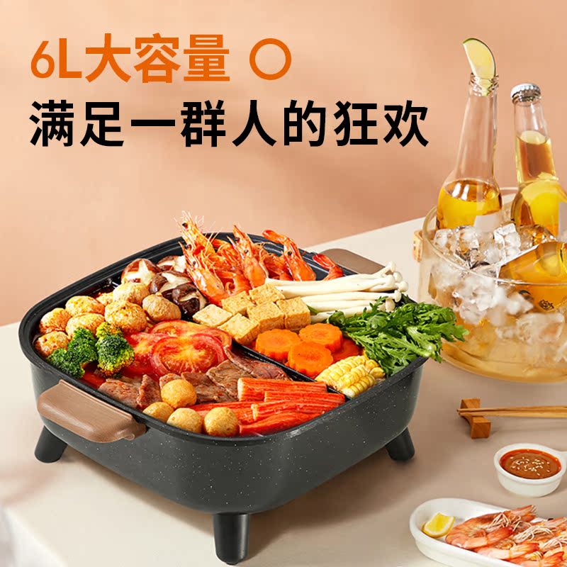 Jiuyang Yuanyang Electric Hot Pot Home Large-capacity Multi-functional Barbecue Integrated Hot Pot quick cooking pot Dormitory Without a frying pan